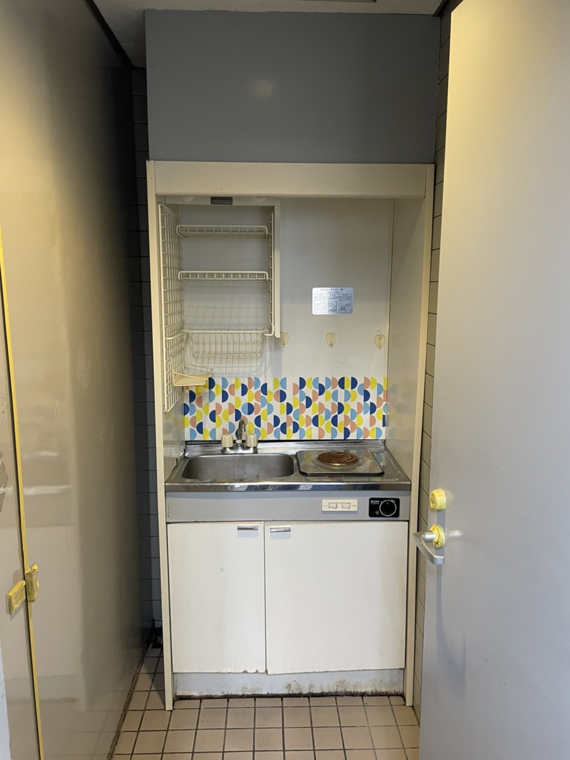 20年前から使用していた洗面台です。熱源はラジエントヒーター。だいぶ使用感を感じられます。