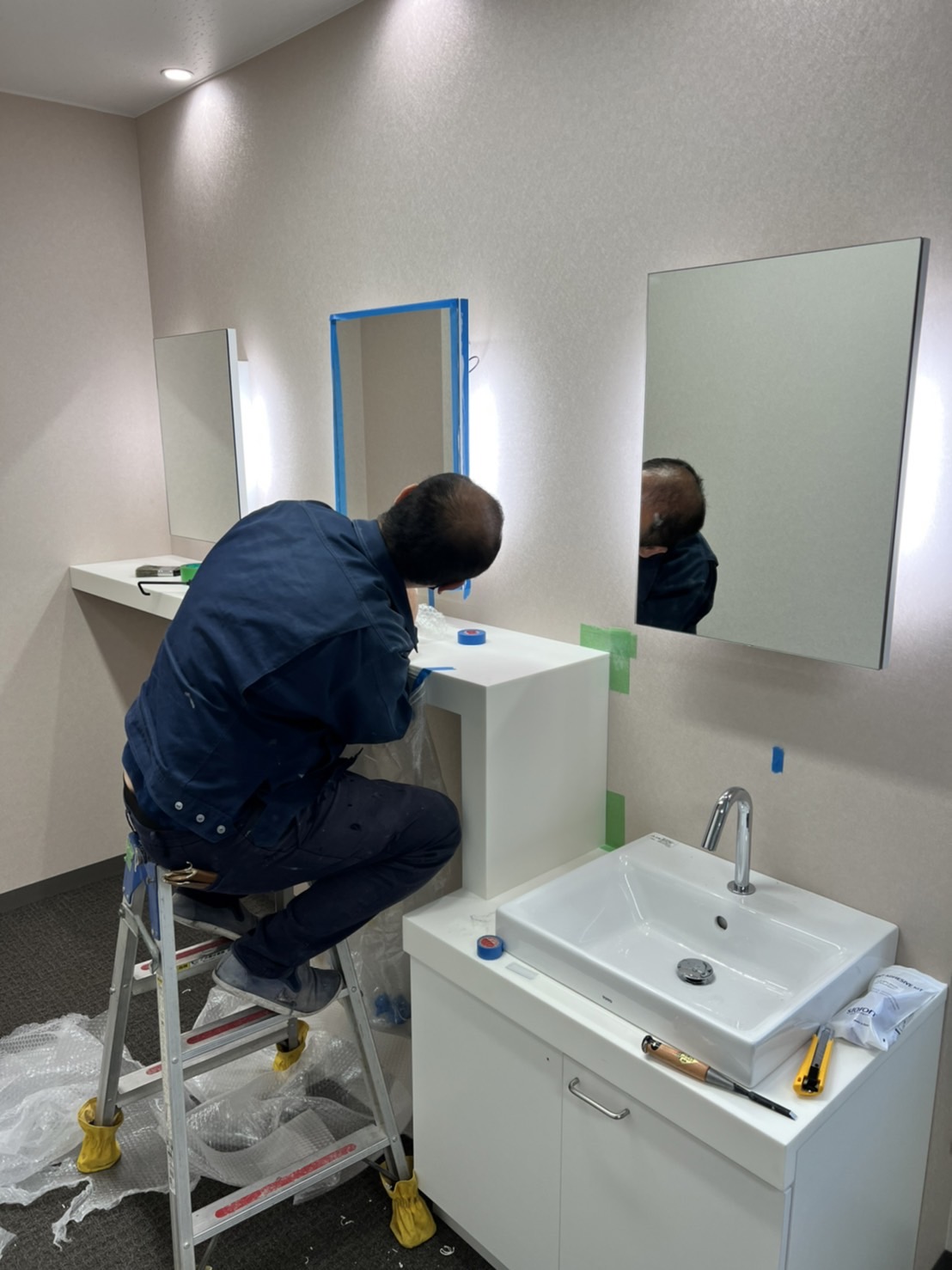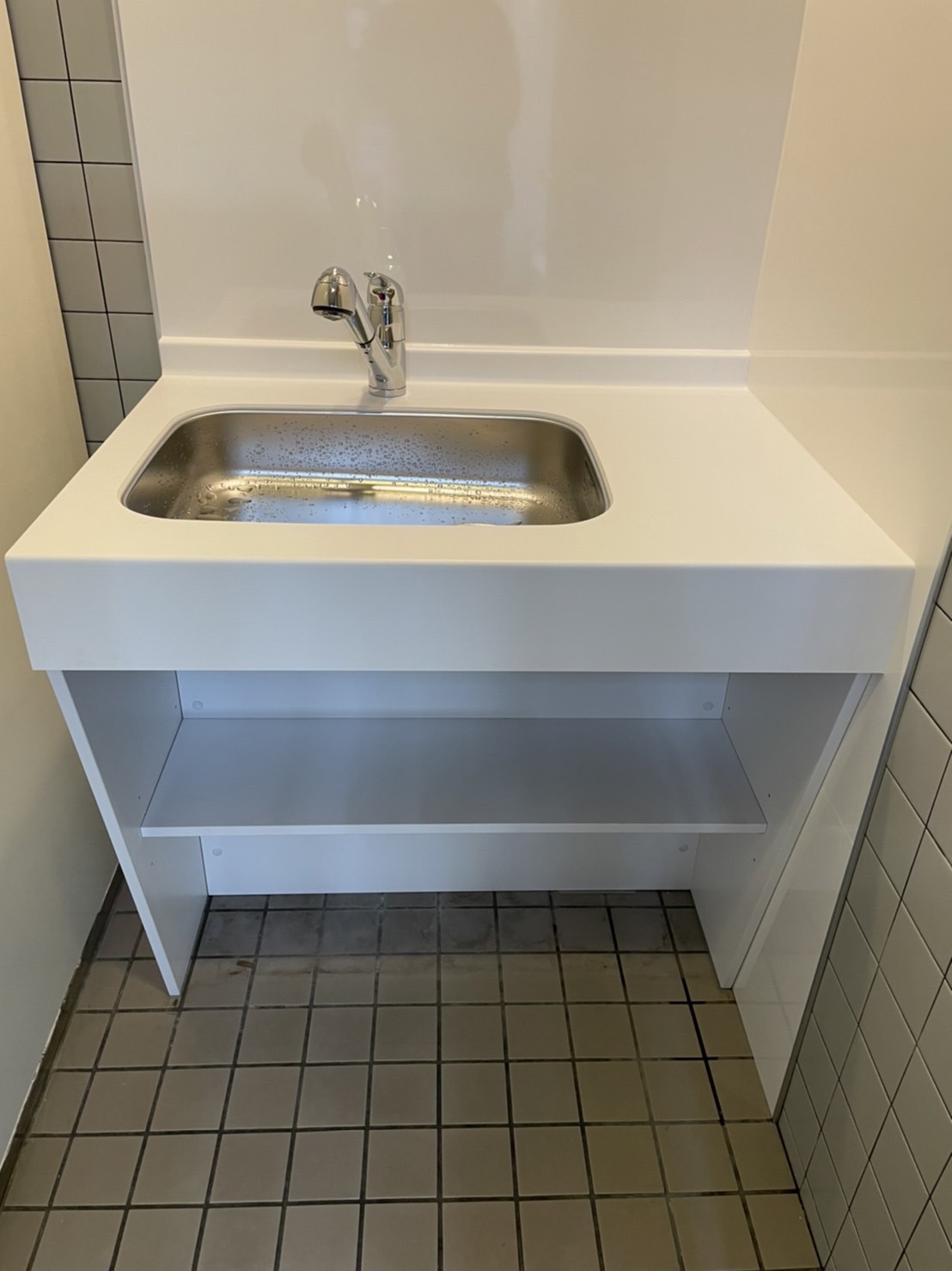 施設の一角に設置していた洗面台を撤去し、新たに洗面台を設置しました。