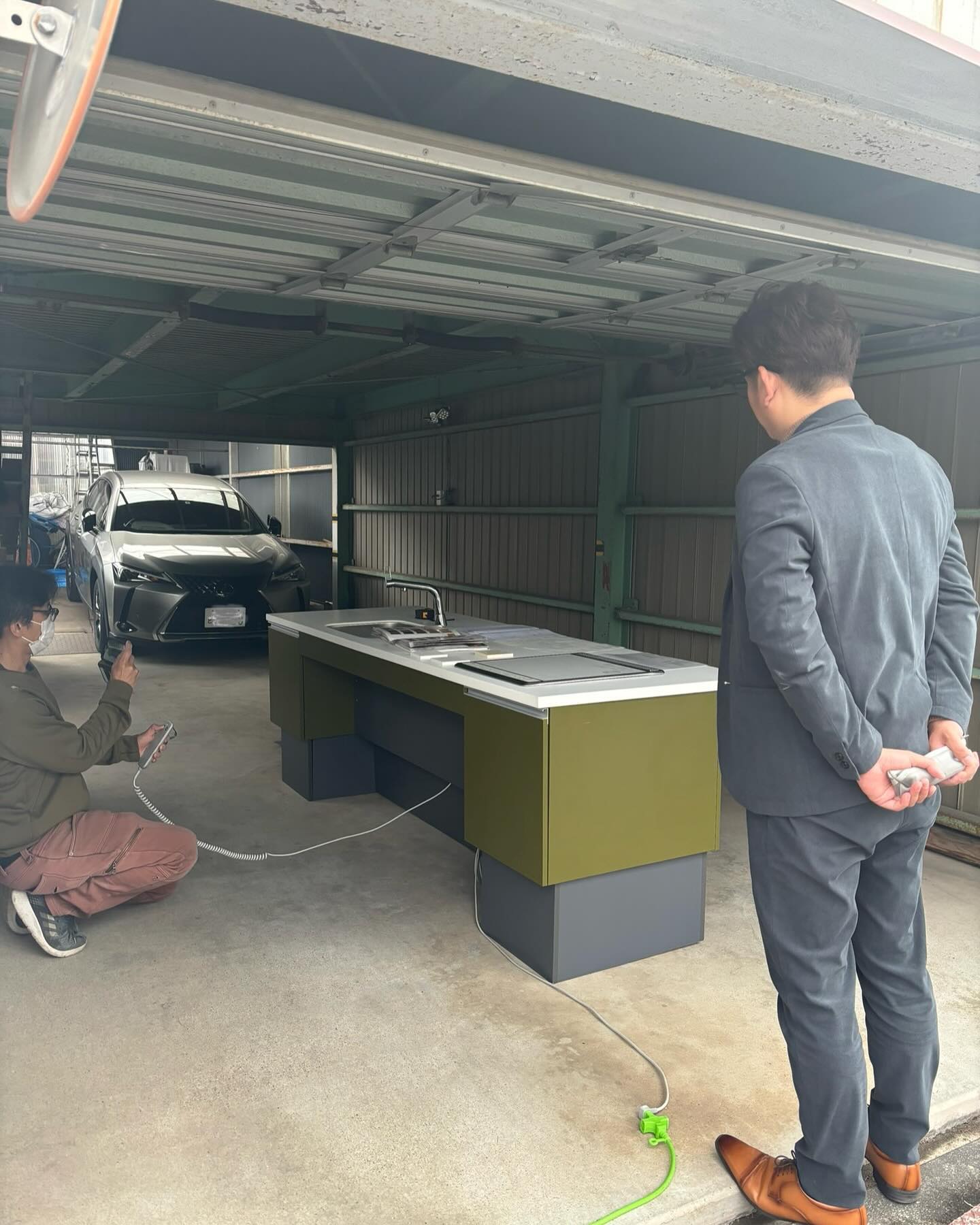 電動昇降アイランドキッチン!お客様宅まで出張してきました!実機を見ながら、サイズ等の打ち合わせができます????