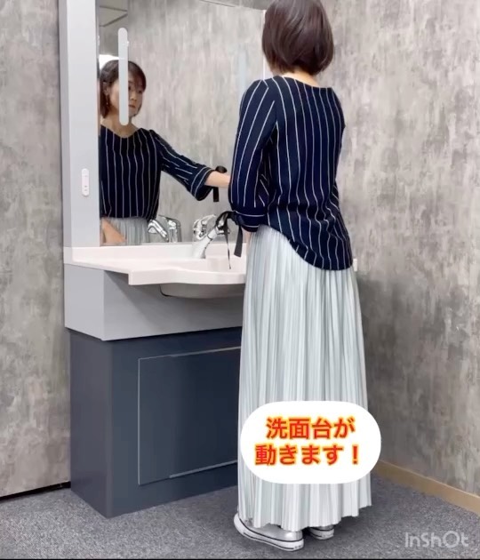 ミラー一体型!!電動昇降洗面台????簡単スイッチ操作!車椅子の方から背の高い方まで、みんなジャストの高さで使えます!※4倍速動画です