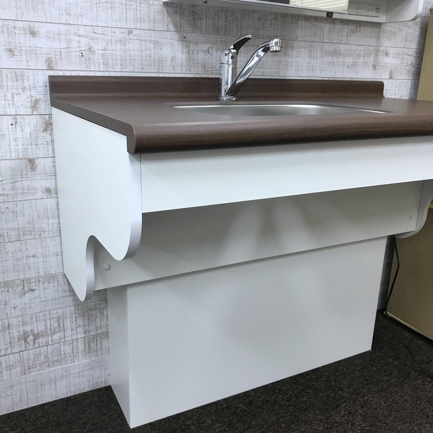 昇降する洗面台を開発中。こちらはボツになったものです。車椅子でもゆったり使えるカタチを目指します!
