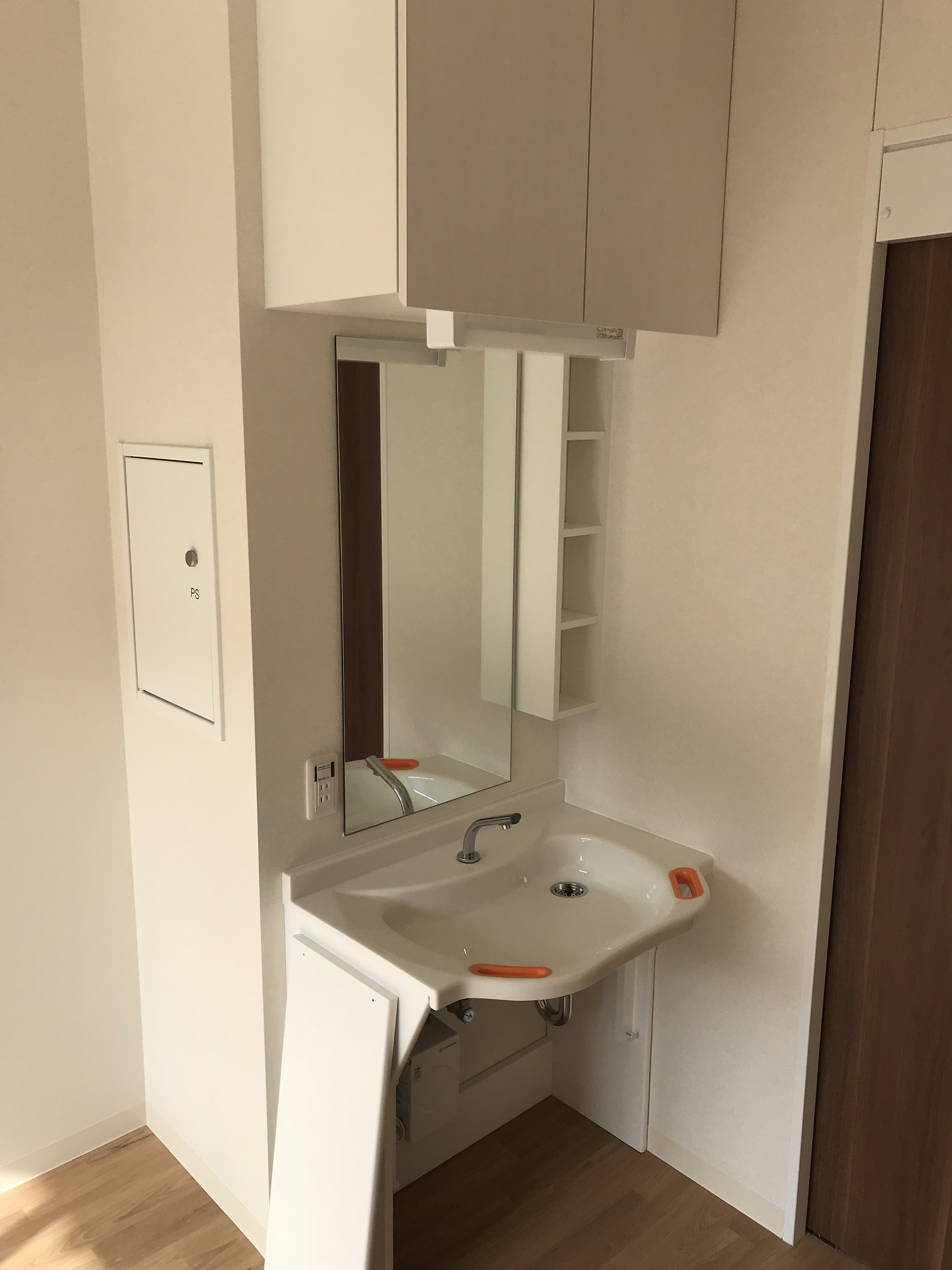 電動昇降洗面台を、各居室66戸に設置しました。