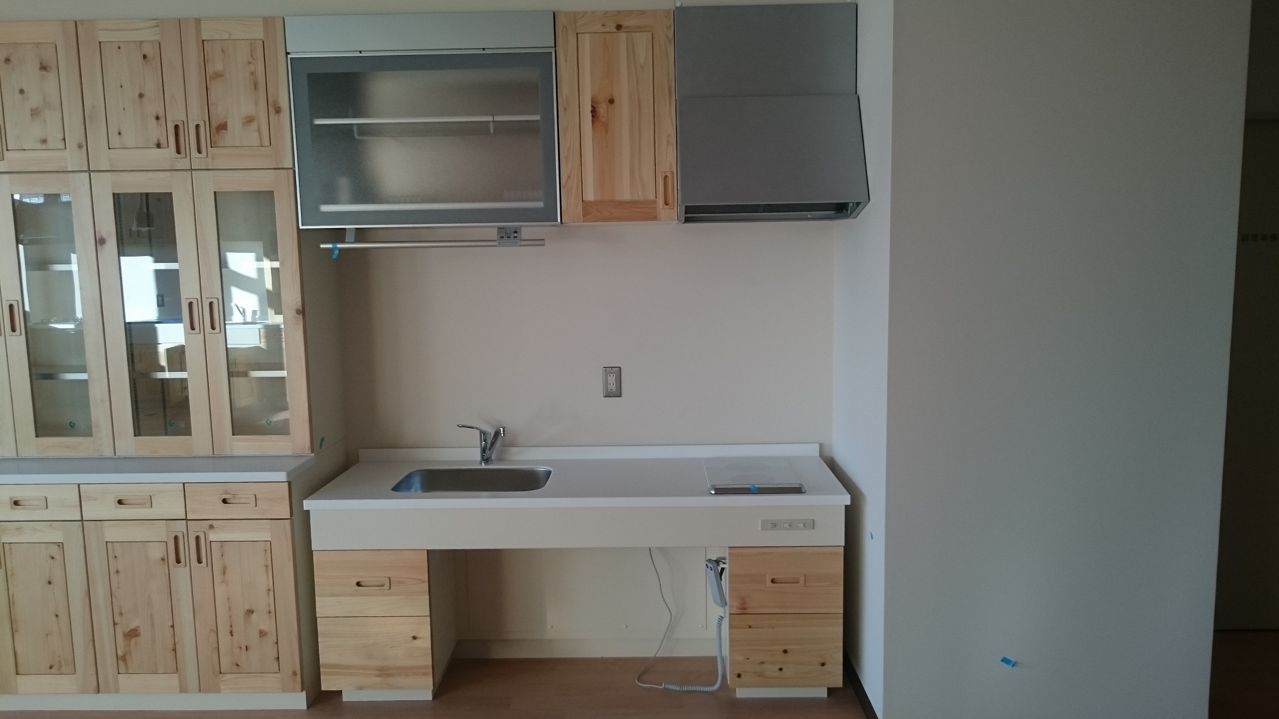 共有スペース3箇所に、それぞれ吊戸棚付のキッチンを設置しました。