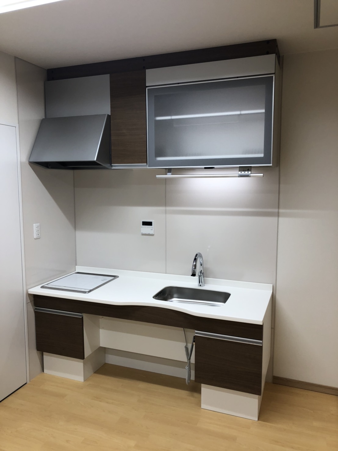 車椅子でも使える、電動昇降式キッチンです。