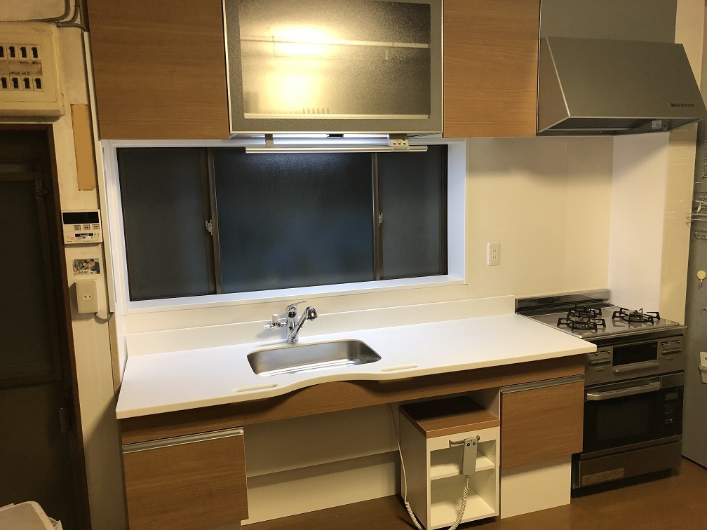 同じく、キッチンも合わせてリフォームしました。車椅子対応のキッチンを作り、設置しました。