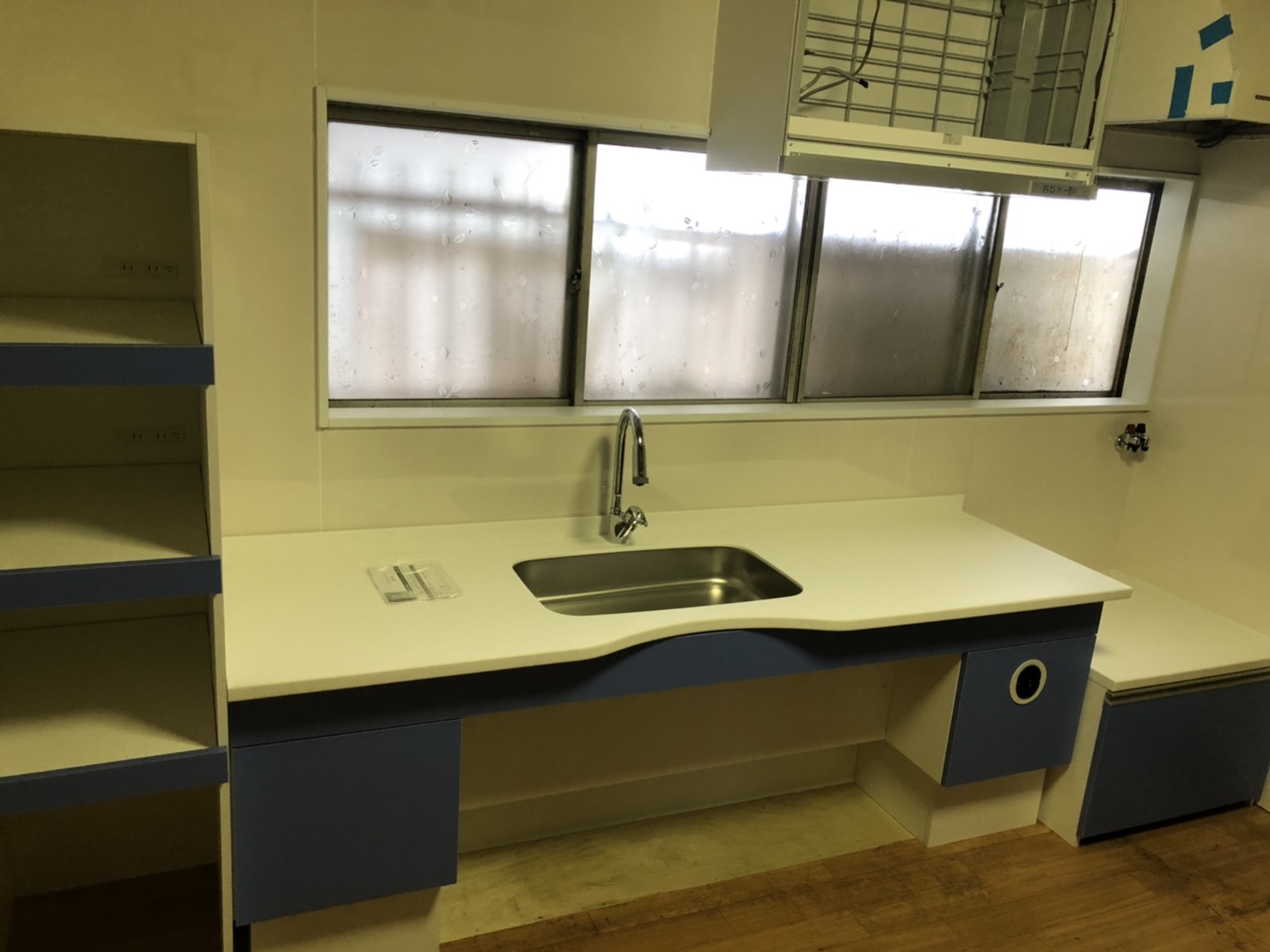 食堂の壁の洗面台も設置しました。