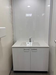 既存の洗面化粧台を外し、新規で低床洗面台を作り設置しました。